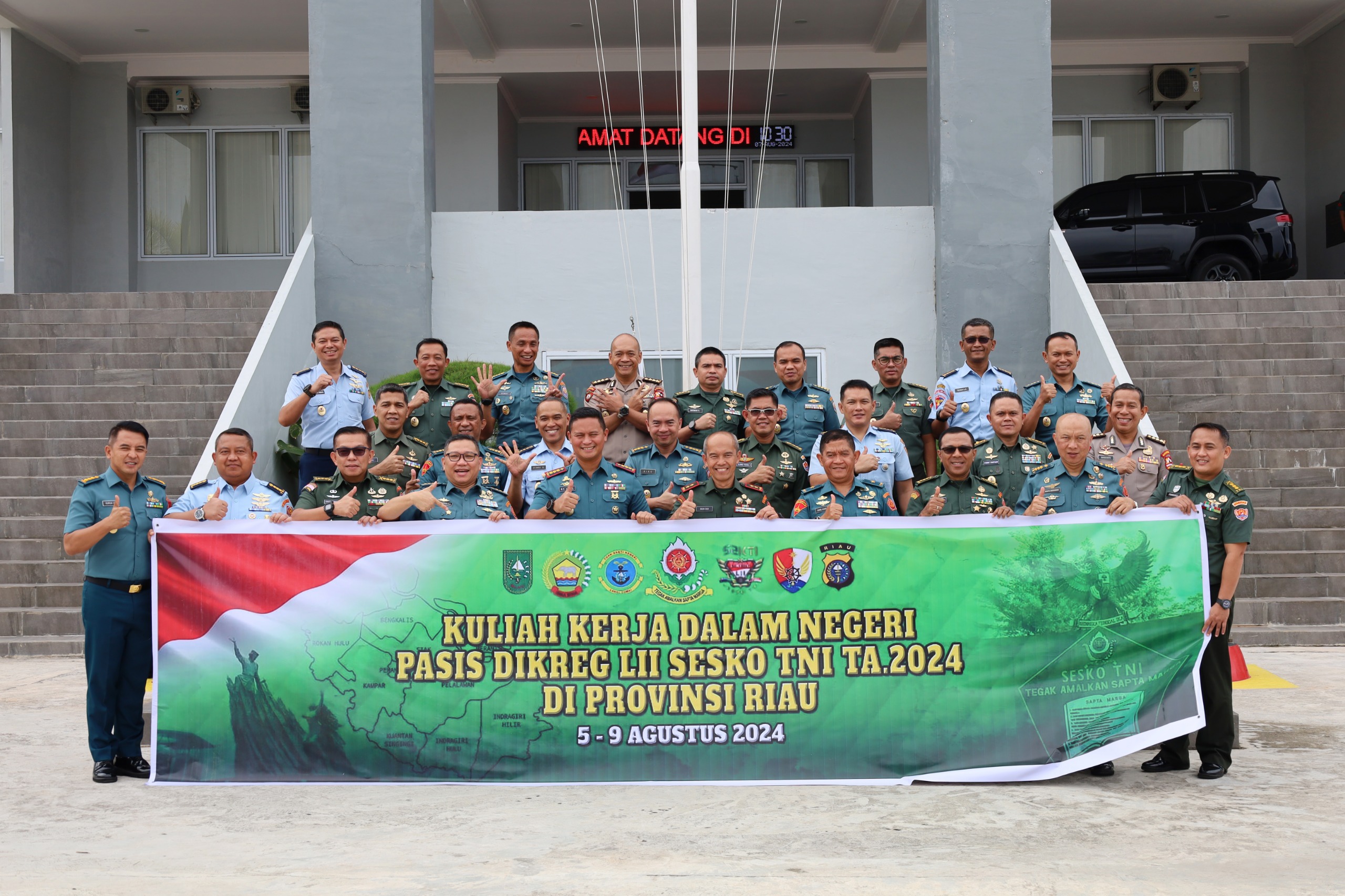 TNI AL, Dumai,- Komandan Lanal Dumai Kolonel Laut (P) Boy Yopi Hamel, menerima kunjungan Wadan Sesko TNI Mayjen TNI Budi Eko Mulyono, S.Sos., M.M., dan Dosen Ahli Opsgab Sesko TNI Brigjen TNI (Mar) Amir Kasman, S.E., M.M., M.Han., beserta Rombongan Pasis Dikreg LII Sesko TNI TA. 2024 dalam rangka Kuliah Kerja Dalam negeri (KKDN) di Provinsi Riau. Kegiatan dilaksanakan di Gedung Wijaya Kusuma Mako Lanal Dumai, Jalan Yos Soedarso No. 1 Dumai, Rabu (07/08/2024).