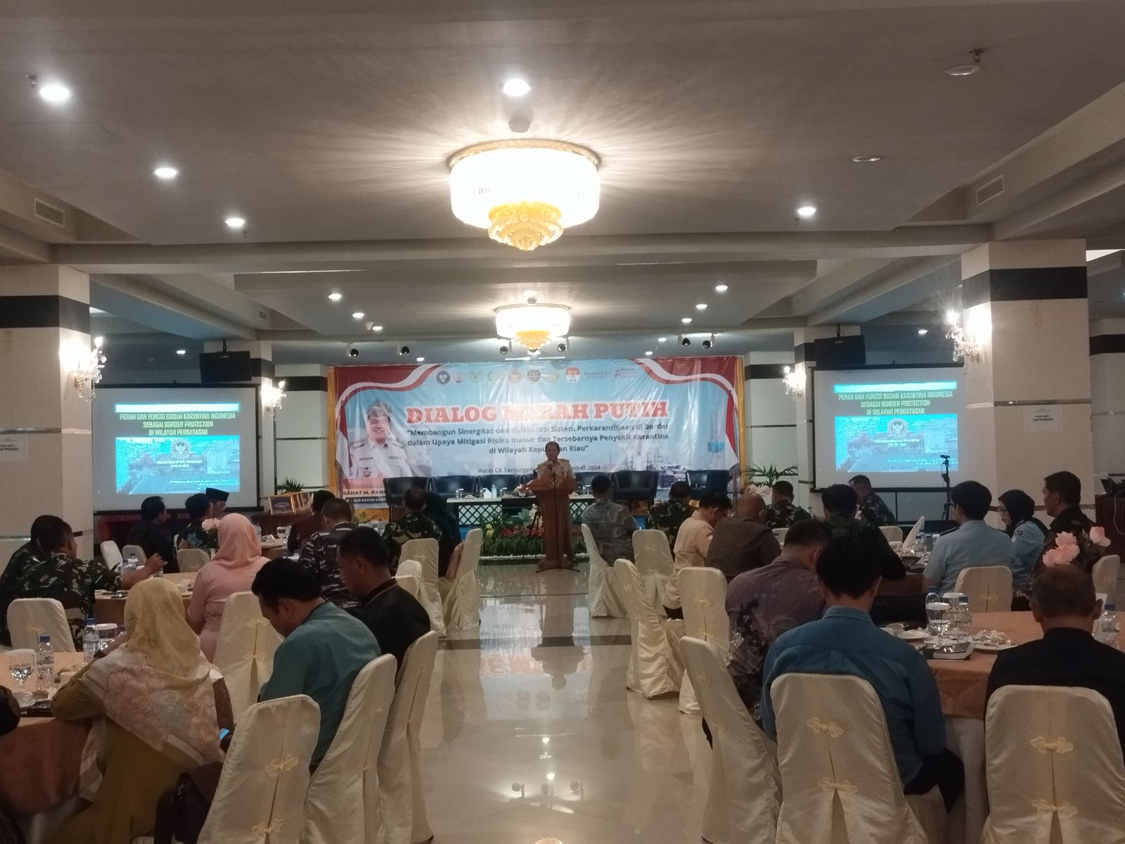 Dialog Merah Putih tersebut mengambil tema “Membangun Sinergitas dan Kolaborasi Sistem Perkarantinaan di Border Dalam Upaya Mitigasi Resiko Masuk dan Tersebarnya Penyakit Karantina di Wilayah Kepulauan Riau”. Kegiatan tersebut dilaksanakan dalam rangka memperkuat sinergi dan kolaborasi untuk sinergi Bersama Dalam Implementasi SSM-QC, Single Inspection and Single Operation.