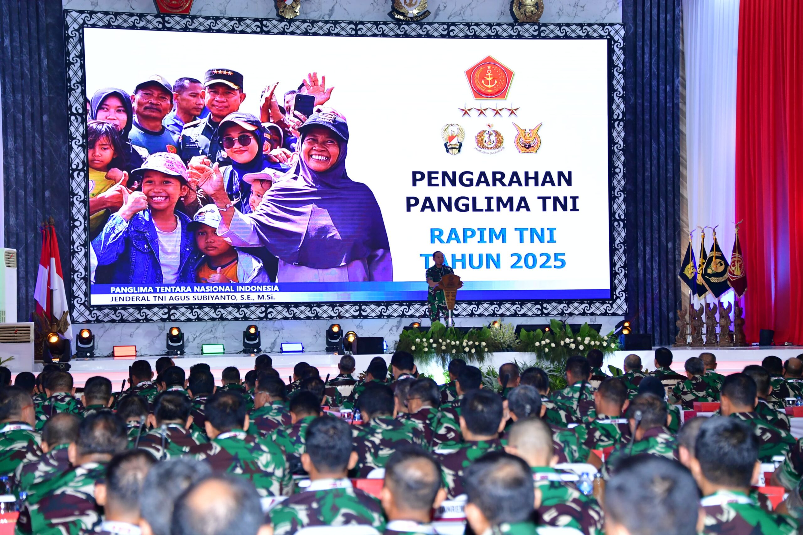 Rapim TNI Tahun 2025 yang dipimpin langsung oleh Panglima TNI Jenderal TNI Agus Subiyanto serta didampingi oleh Kepala Staf Angkatan Tri Matra yaitu Kepala Staf TNI Angkatan Darat Jenderal TNI Maruli Simanjuntak, M.Sc., Kepala Staf TNI Angkatan Laut Laksamana TNI Dr. Muhammad Ali, S.E., M.M., M.Tr.Opsla., dan Kepala Staf TNI Angkatan Udara Marsekal TNI Mohamad Tonny Harjono, S.E., M.M., dengan mengangkat tema “TNI Prima Sebagai Garda Terdepan Pertahanan Negara Siap Mendukung Pembangunan Ekonomi Nasional Menuju Indonesia Maju.”