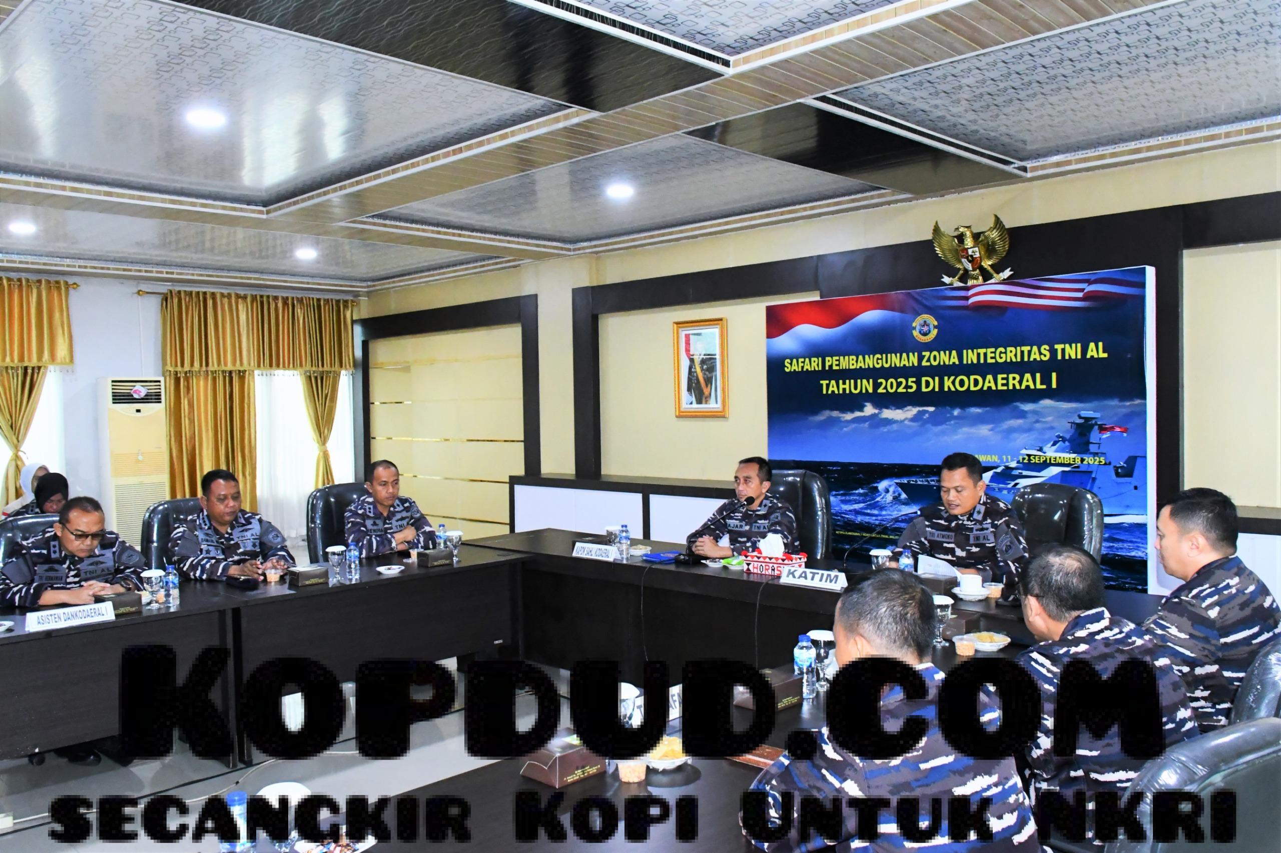 TNI AL, Belawan,- Komandan Komando Daerah Angkatan Laut I (Dankodaeral I) Laksamana Muda TNI Deny Septiana, S.I.P., M.A.P., yang diwakili Kapok Sahli Kodaeral I Kolonel Laut (P) Fajar Tri Rohadi, S.E., memimpin Penutupan Safari Pembangunan Zona Integritas TNI Angkatan Laut Tahun 2025, bertempat di Ruang R. Mulyadi Mako Kodaeral I, Jalan Serma Hanafiah No. 01 Belawan, Sumatera Utara, Jumat (12/09/2025).