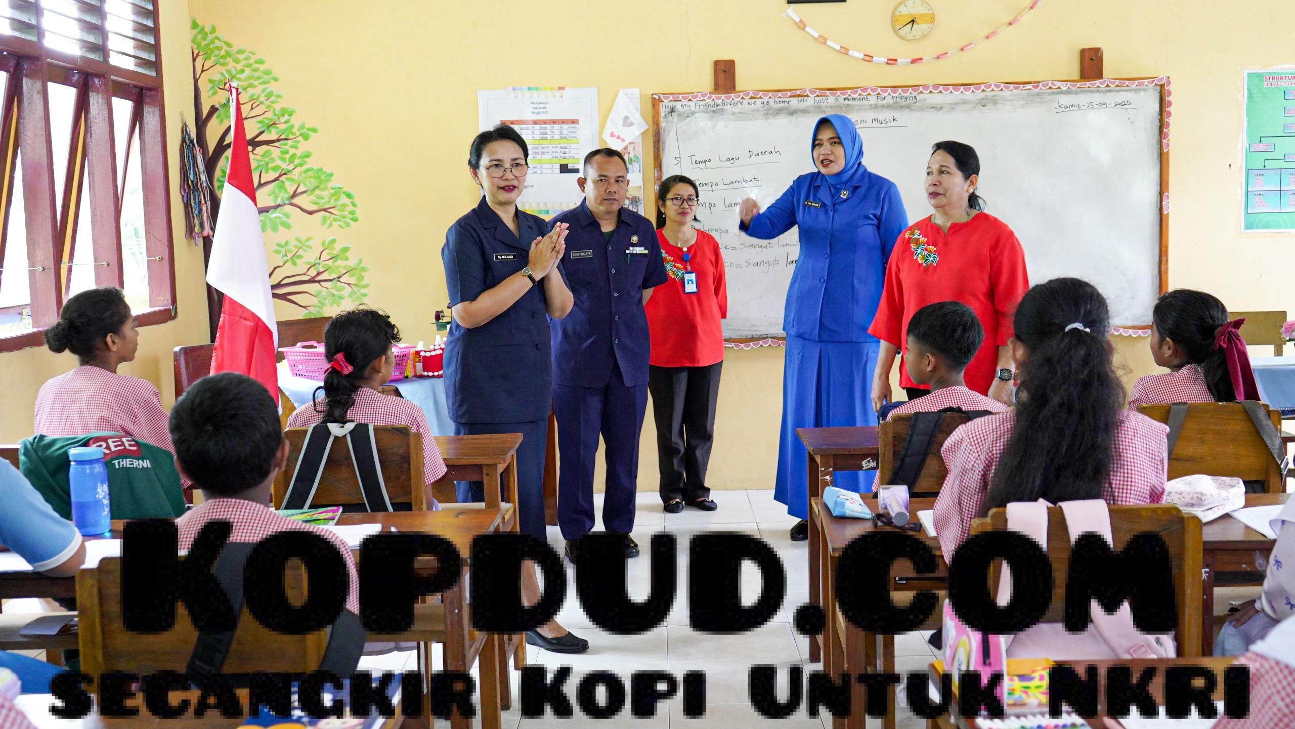 TNI AL, Ambon,- Pengawas Cabang Ambon Yayasan Hang Tuah Ny. Inca Hanarko Djodi P. didampingi Pengurus Daerah Jalasenastri Gabungan Koarmada RI dan Ketua Pengurus Cabang Ambon Yayasan Hang Tuah Kapten Laut (K) Agus Wijaya melaksanakan kunjungan ke Satuan Pendidikan Yayasan Hang Tuah Cabang Ambon, bertempat di Mako Kodaeral IX, Kamis (25/09/2025).
