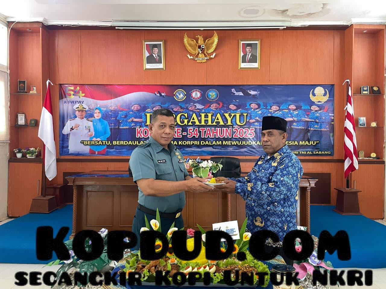 TNI AL, Sabang,– Pangkalan TNI Angkatan Laut (Lanal) Sabang memperingati Hari Ulang Tahun (HUT) Korps Pegawai Republik Indonesia (Korpri) Ke-54 dengan menggelar doa bersama dan pemotongan tumpeng yang dipimpin oleh Palaksa Lanal Sabang Mayor Laut (P) Syafruddin. Kegiatan tersebut berlangsung di Aula Teuku Umar, Mako Lanal Sabang, Jalan Yos Sudarso, Kuta Ateuh, Kecamatan Sukajaya, Kota Sabang, Senin (1/12/2025).