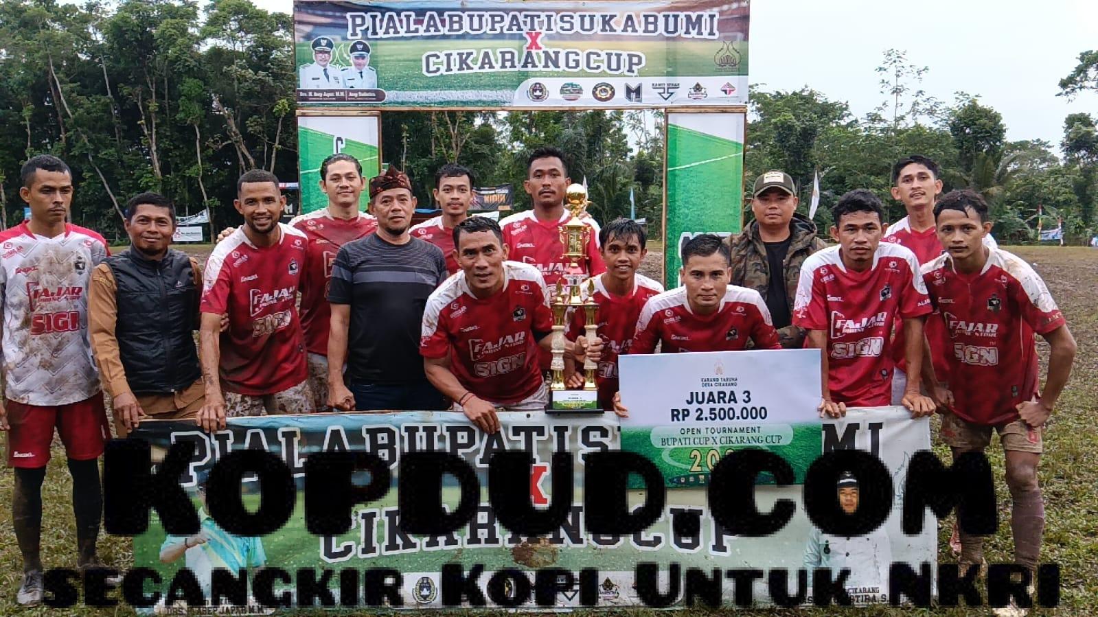 Jampangkulon, Sukabumi – Tim PCP Surade berhasil meraih juara ketiga dalam turnamen Bupati Cup 2025 setelah mengalahkan Galaticos Cibodas Cibitung dalam laga perebutan tempat ketiga. Pertandingan sengit yang berlangsung di Lapang Kira Jangkung, Desa Cikarang, Kecamatan Jampangkulon, Kabupaten Sukabumi pada Senin, 8 Desember 2025, berakhir dengan skor 2-1 untuk keunggulan PCP Surade.