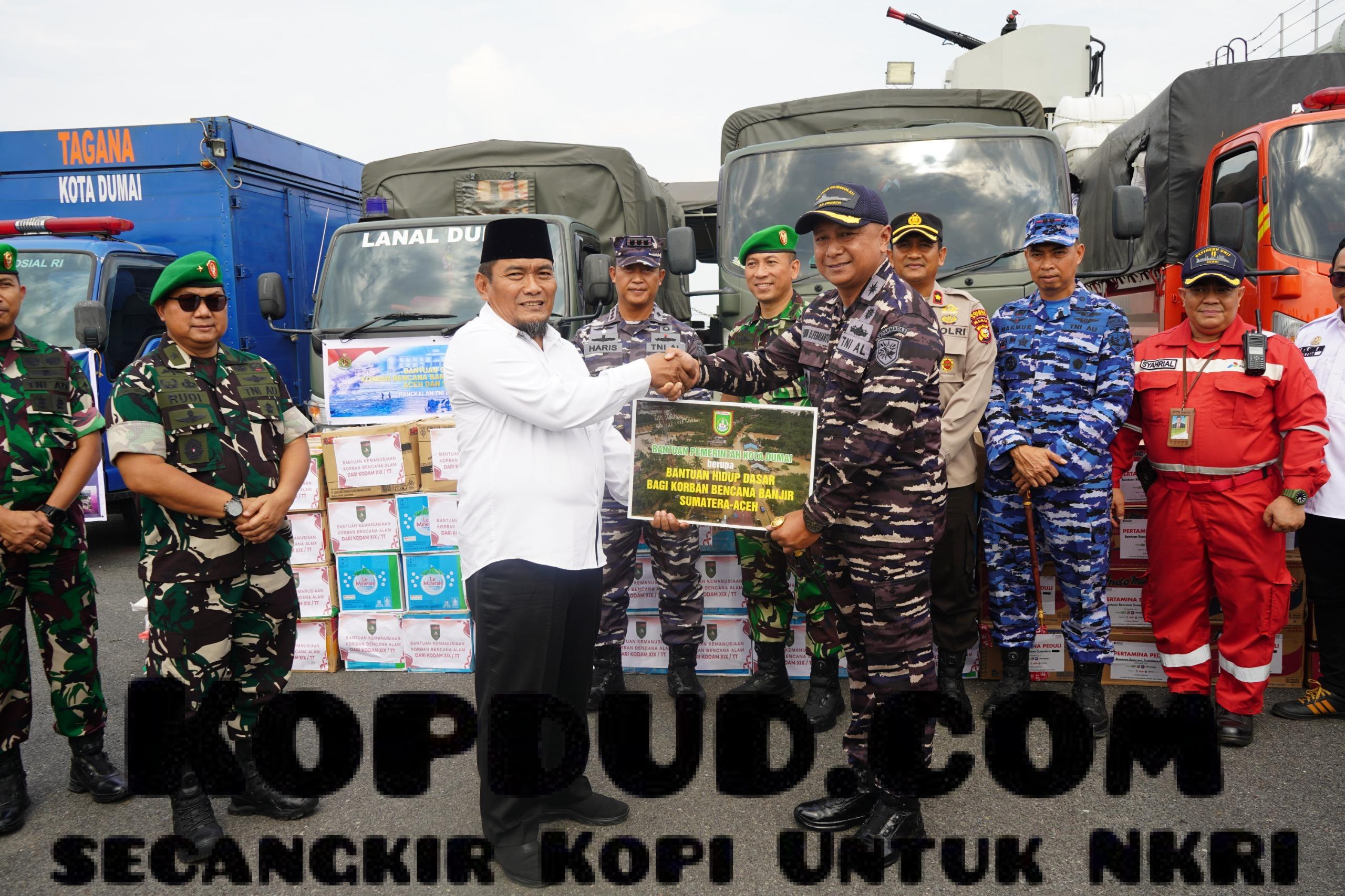 Sebelumnya, Komandan Lanal Dumai Kolonel Laut (P) Abdul Haris, S.E., M.M.D.S., dengan didampingi Ketua Cabang 4 Daerah Kodaeral I Gabungan Jalasenastri Koarmada RI Ny. Dewi Abdul Haris, telah melepas keberangkatan tiga truk bantuan kemanusiaan dari Mako Lanal Dumai. Teriring doa dan harapan semoga bantuan tersebut dapat sampai dengan aman dan tepat sasaran kepada masyarakat yang membutuhkan.
