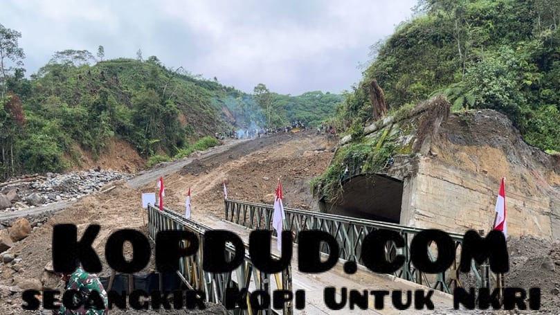 Kopdud.com, Jakarta – Enam jembatan bailey di Provinsi Aceh sudah rampung 100 persen dibangun pascabencana banjir dan longsor hingga Sabtu (27/12). Rinciannya, lima titik di Kabupaten Bireuen dan satu titik di Kabupaten Bener Meriah.