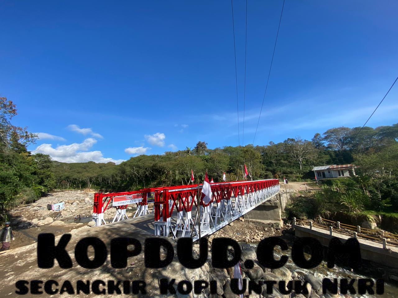 Kopdud.com, Aceh — TNI melalui Komando Daerah Militer (Kodam) Iskandar Muda telah merampungkan pembangunan dua jembatan darurat (Bailey) lagi di Aceh per Jumat (16/1). Rampungnya dua jembatan tersebut diharapkan dapat memulihkan kembali konektivitas wilayah yang sempat terputus akibat banjir bandang dan longsor pada November lalu.