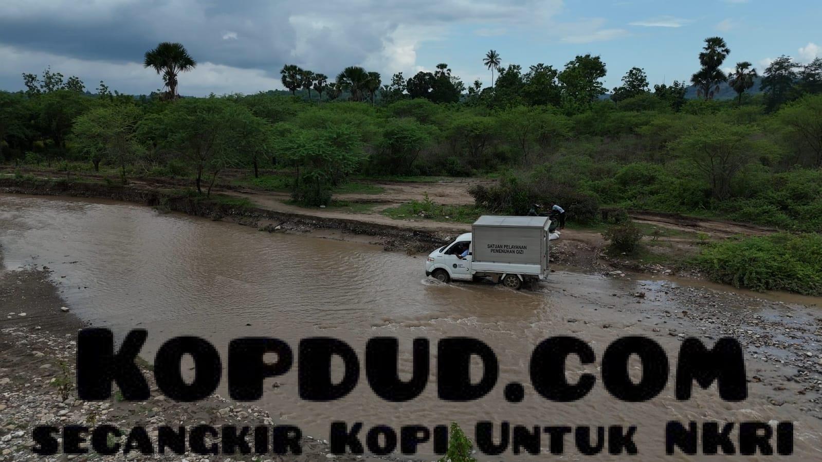 Kopdud.com, Timor Tengah Selatan – Di tengah banjir Sungai Noelmina akibat hujan berkepanjangan, relawan SPPG Desa Koa, Kecamatan Mollo Barat, Kabupaten Timur Tengah Selatan, NTT bersama warga terpaksa menyeberangi sungai berarus deras demi mengantarkan Makanan Bergizi Gratis (MBG) ke sekolah-sekolah yang berada di seberang dapur.