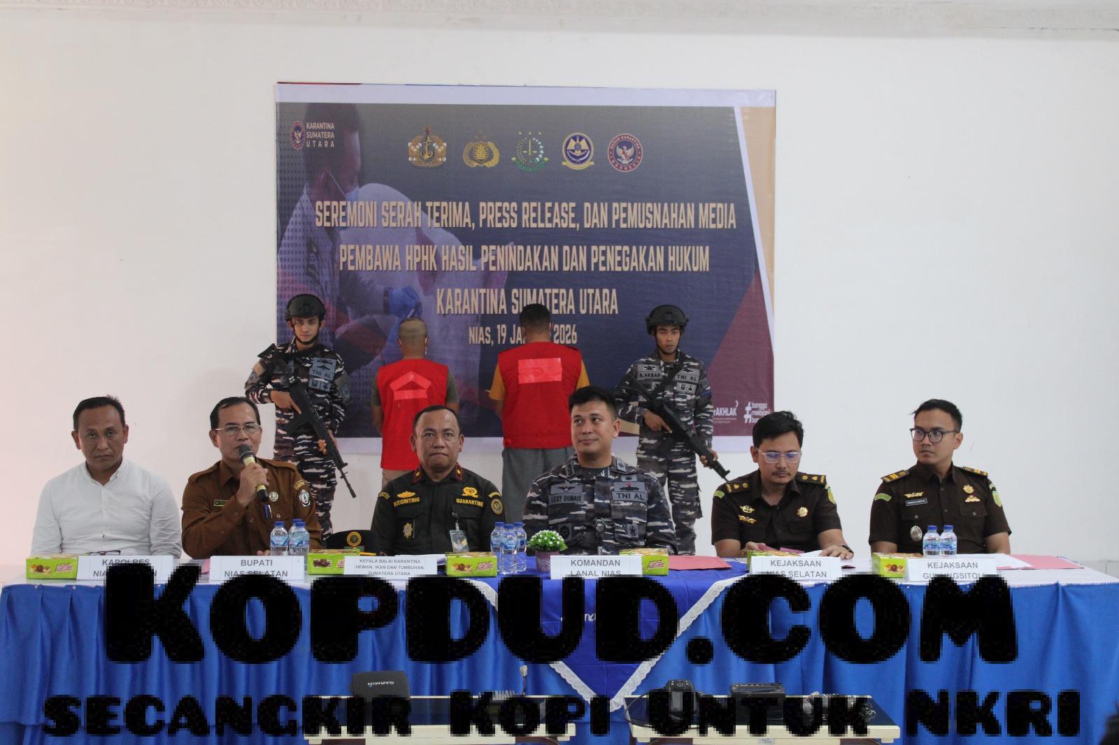 kopdud.com,- TNI AL, Nias Selatan,- Pangkalan TNI Angkatan Laut (Lanal) Nias secara resmi melimpahkan berkas perkara dugaan tindak pidana pelanggaran karantina hewan kepada Balai Karantina Hewan, Ikan, dan Tumbuhan Sumatera Utara, Senin (19/1/2026).