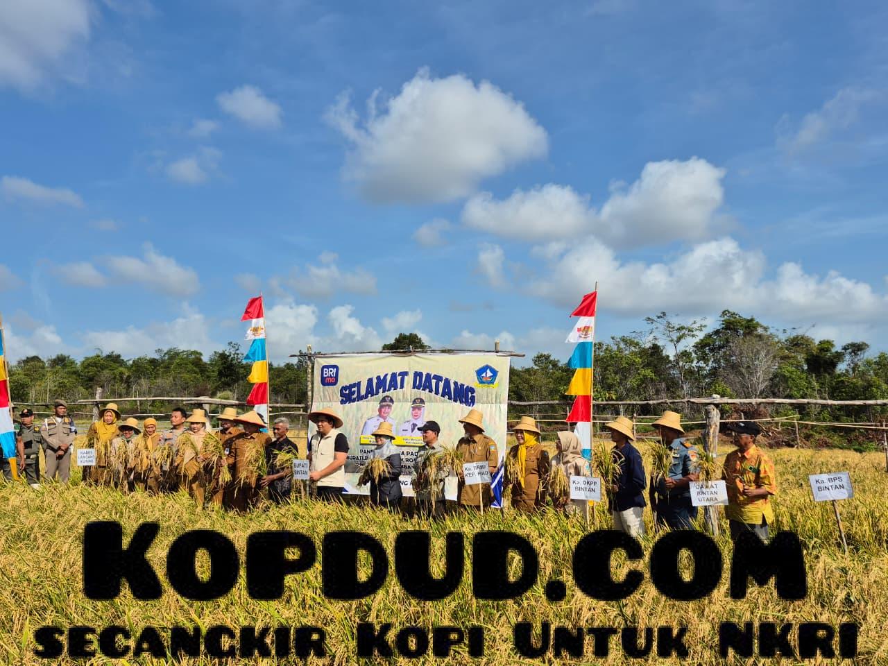 Kopdud.com,- TNI AL, Bintan,- Kegiatan Panen Perdana Padi Gogo Kelompok Tani Maju Jaya di Desa Lancang Kuning, Kecamatan Bintan Timur, menjadi momen strategis dalam upaya memperkuat ketahanan pangan daerah. Pgs. Pasiter Lanal Bintan, Kapten Laut (P) Darmadi, secara resmi mewakili Danlanal Bintan Letkol Laut (P) Wityuda Timortimur Suratmono, MPM., menghadiri acara tersebut di Lahan Padi Poktan Maju Jaya, Senin (26/01/2026).