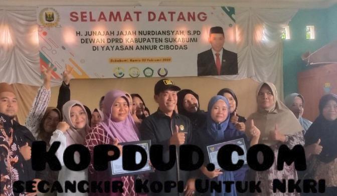 Dalam sambutannya, H. Jajah menuturkan : “Kami sebagai wakil rakyat sangat mendorong untuk kemajuan dunia pendidikan di Kabupaten Sukabumi khususnya Dapil Satu. Sehingga kesejahteraan guru dan siswa akan terus kami perjuangkan.”