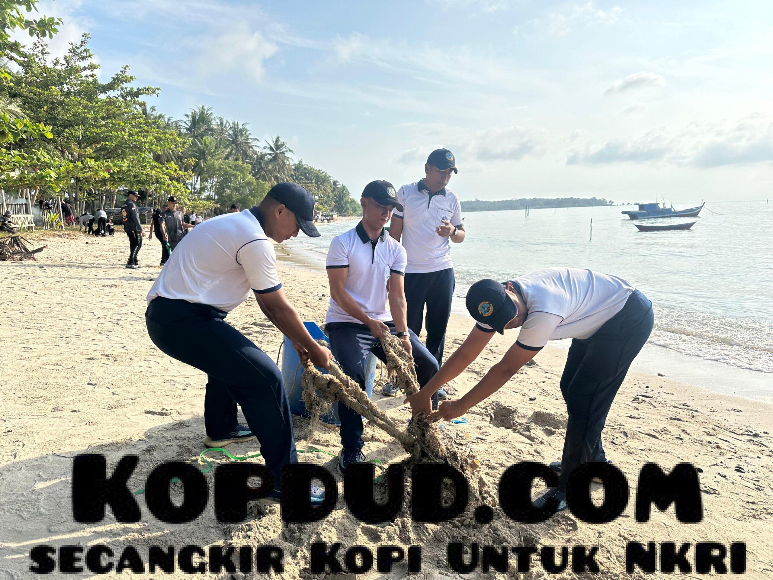 Lanal Dabo Singkep Gelar Aksi Bersih Pantai Dalam Program “Pantai Bersih” di Pantai Sekop