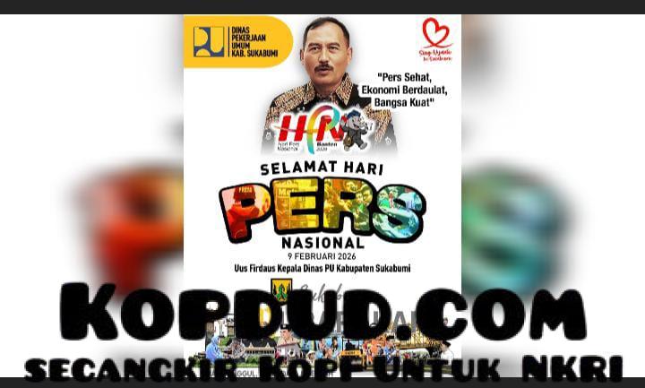 Kepala Dinas Pekerjaan Umum Kabupaten Sukabumi, Drs. Uus Firdaus, MM, menyampaikan ucapan Selamat Hari Pers Nasional 2026. Beliau menegaskan bahwa insan pers punya kontribusi luar biasa dalam menyampaikan informasi yang akurat, berimbang, dan edukatif, terutama terkait pembangunan infrastruktur serta pelayanan publik di Kabupaten Sukabumi.