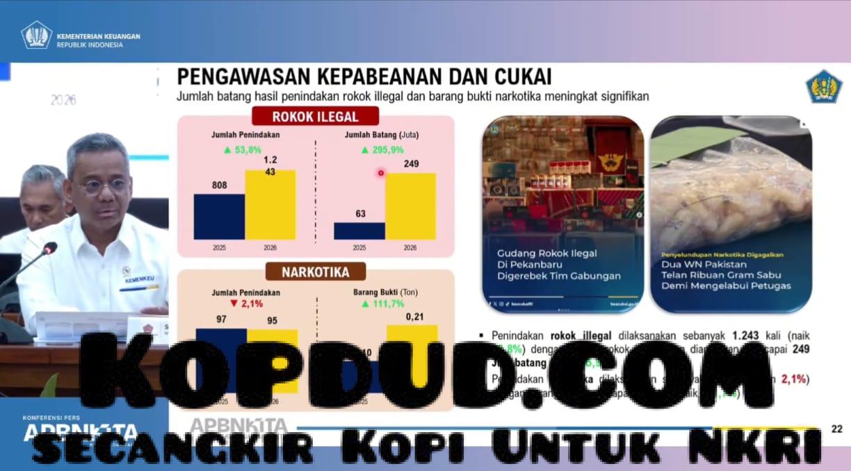 “Di Januari 2026 ini meningkat menjadi 249 juta rokok ilegal yang ditangkap oleh Bea Cukai. Dan tentu ini adalah soliditas Bea Cukai yang kita harapkan akan berlangsung terus ke depan,” ujar Suahasil.