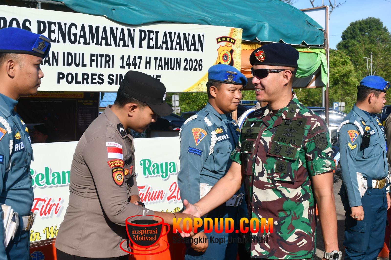 TNI AL, Simeulue,- Komandan Pangkalan TNI AL Simeulue bersama Forkopimda Kabupaten Simeulue melaksanakan pemantauan langsung di Pelabuhan Penyeberangan Kolok, Kabupaten Simeulue dalam rangka memastikan keamanan dan kelancaran arus mudik Hari Raya Idul Fitri 1447 H, Rabu (18/3/2026).