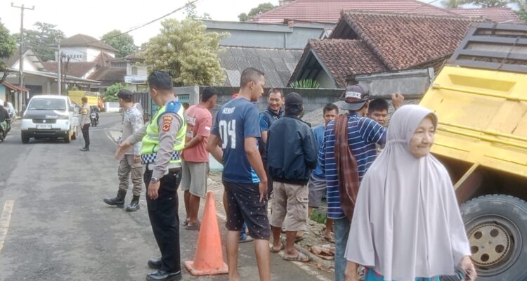Jampangkulon, Sukabumi – Sebuah truk pengangkut genteng dengan nomor polisi F 8447